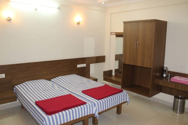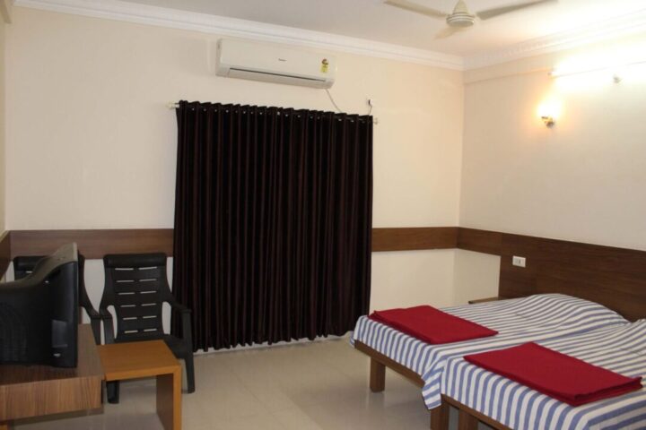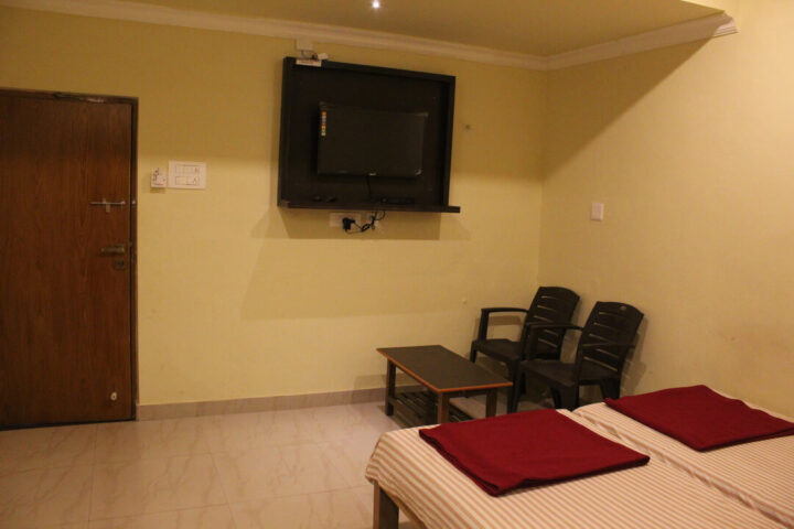 As the name of the room suggests, this Deluxe Room (AC) is the ideal choice for a comfortable stay in a lavish environment. The well-lit and elegant interiors of the room set the stage for a relaxing stay. The Room is decked out with all modern amenities.(Best in Kollur / Moookambika)